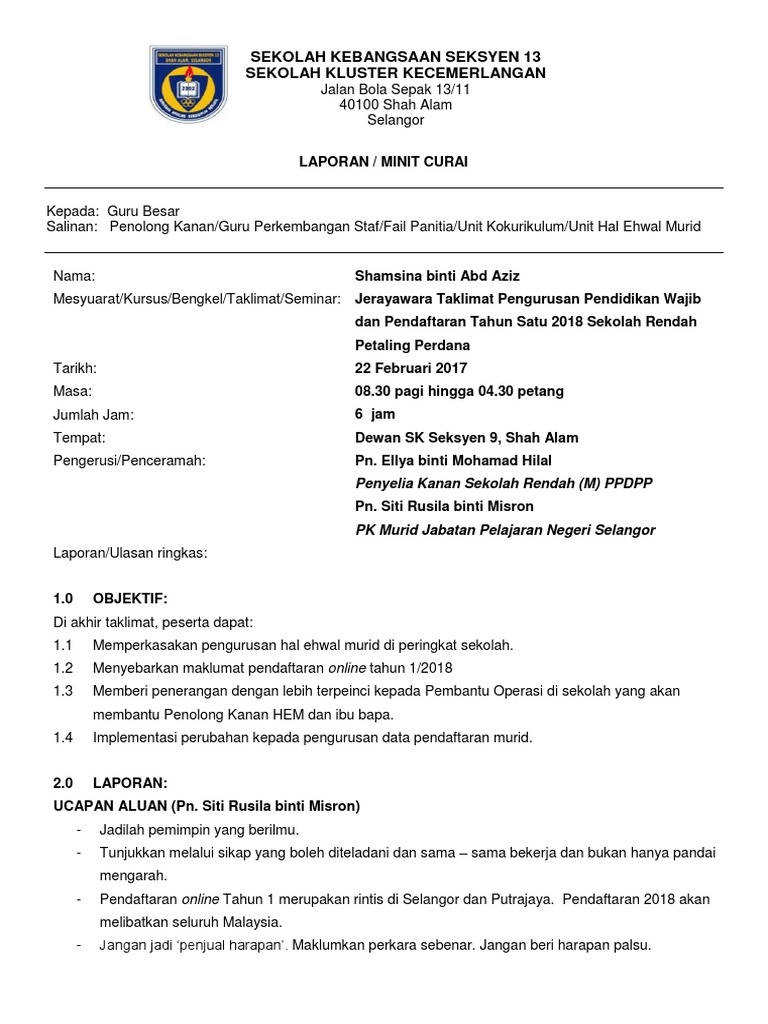 Minit Curai Taklimat Pendaftaran Tahun 1 Pdf